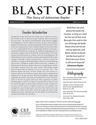 Blast Off! The Story of Johannes Kepler is a space-themed Party Club™ lesson that uses the wonders of the universe to help children learn that God the Creator has power to save them from sin and take care of them. Sharing the Gospel with children isn’t rocket science, but you can use a bit of rocket science to share the Gospel with children!